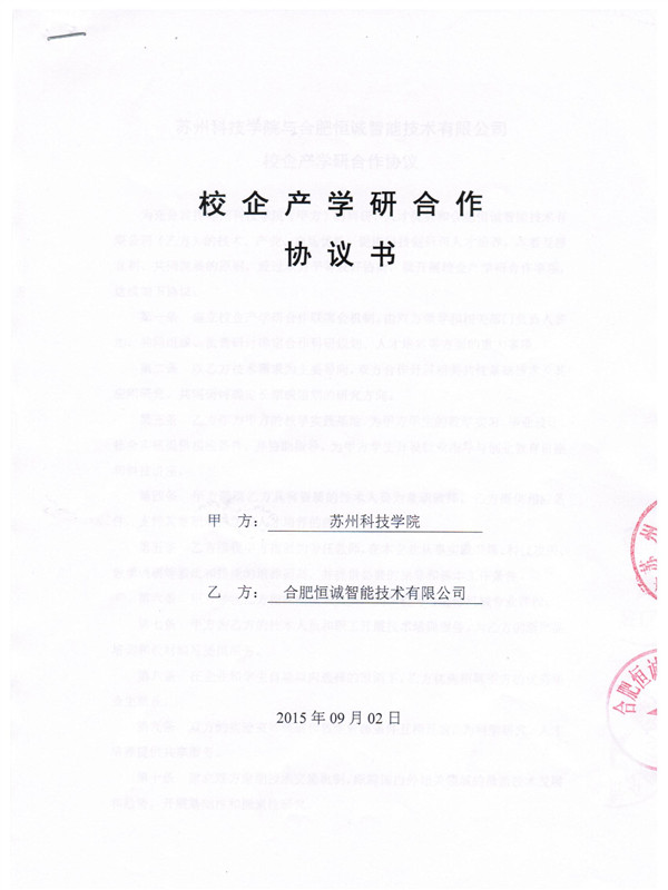 我公司于9月2日與蘇州科技學(xué)院就運(yùn)用知名高校人才、智能低氧的應(yīng)用、技術(shù)優(yōu)勢結(jié)合企業(yè)市場資源開展產(chǎn)學(xué)研合作進(jìn)行探討,簽訂合作協(xié)議。