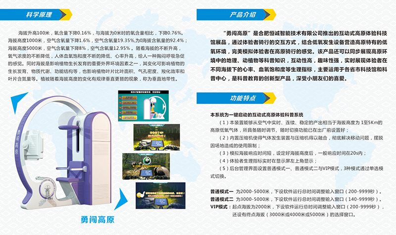 作為國內(nèi)智能低氧產(chǎn)學(xué)研一體化標(biāo)桿企業(yè),我司攜國內(nèi)首創(chuàng)互動式高原體驗科普系統(tǒng)系列產(chǎn)品“勇闖高原”和“魔幻高原”亮相展會。