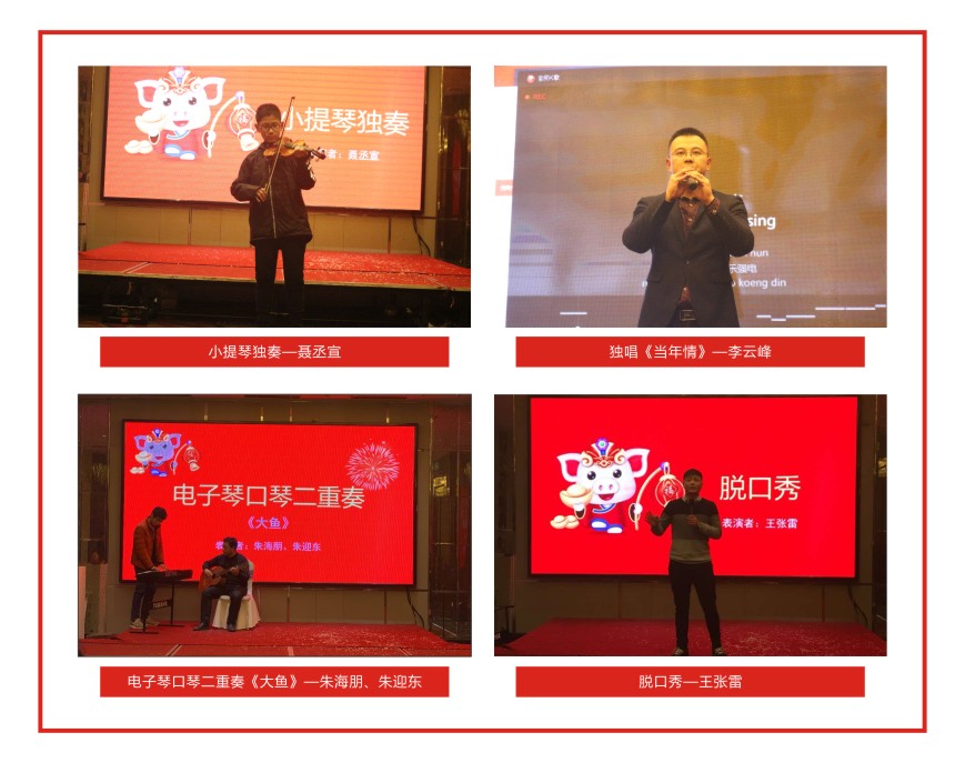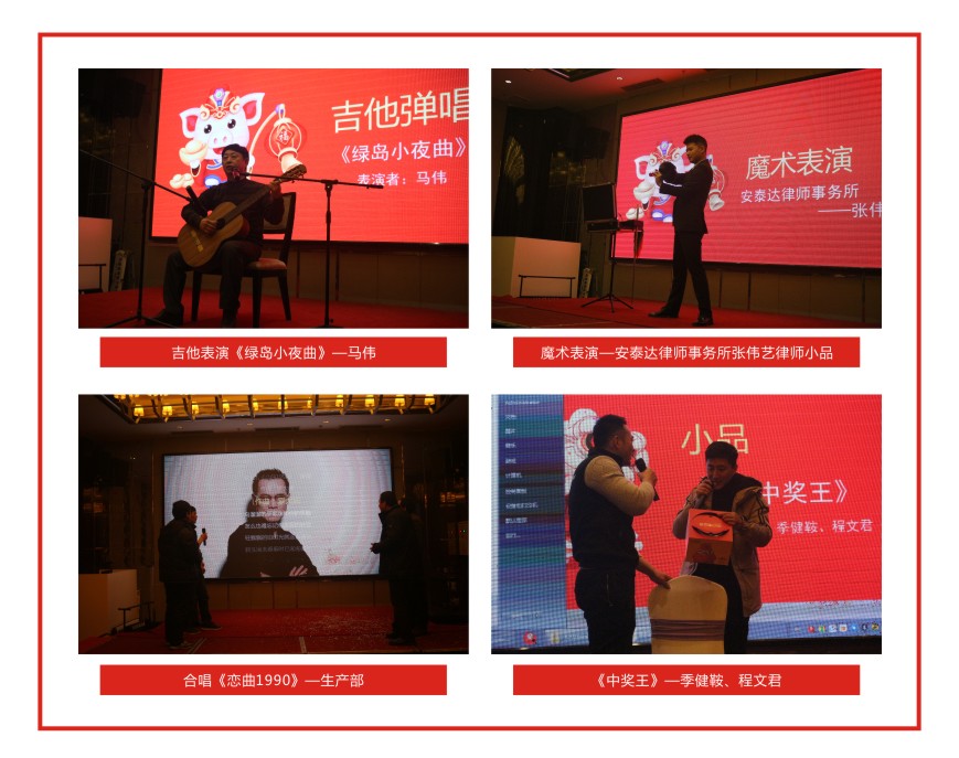 公司員工帶來了各種精彩絕倫的表演,吉他彈奏、大合唱、小品、脫口秀等節(jié)目,讓人目不暇接。特邀嘉賓安泰達律師事務所的張偉藝律師及聶丞宣小帥哥還為大家?guī)砹司实哪g表演和小提琴獨奏。晚會不僅充滿了歡聲笑語,同時也讓大家的心更緊密的融合在了一起。公司員工和來賓們,積極參與游戲、相互敬酒、參加K歌環(huán)節(jié),讓歌聲、掌聲、喝彩聲一直飄蕩在現(xiàn)場。整場晚會高潮迭起,呈現(xiàn)了恒誠這個大家庭的和諧幸福。