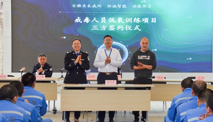2019年4月19日上午,安徽省未戒所與合肥恒誠(chéng)智能技術(shù)有限公司及動(dòng)能體育在蜀山區(qū)舉行了“戒毒人員低氧訓(xùn)練項(xiàng)目三方戰(zhàn)略合作協(xié)議”的簽約儀式。